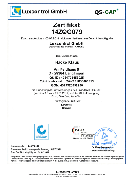 Quelle: QS Qualität und Sicherheit GmbH, www.q-s.de